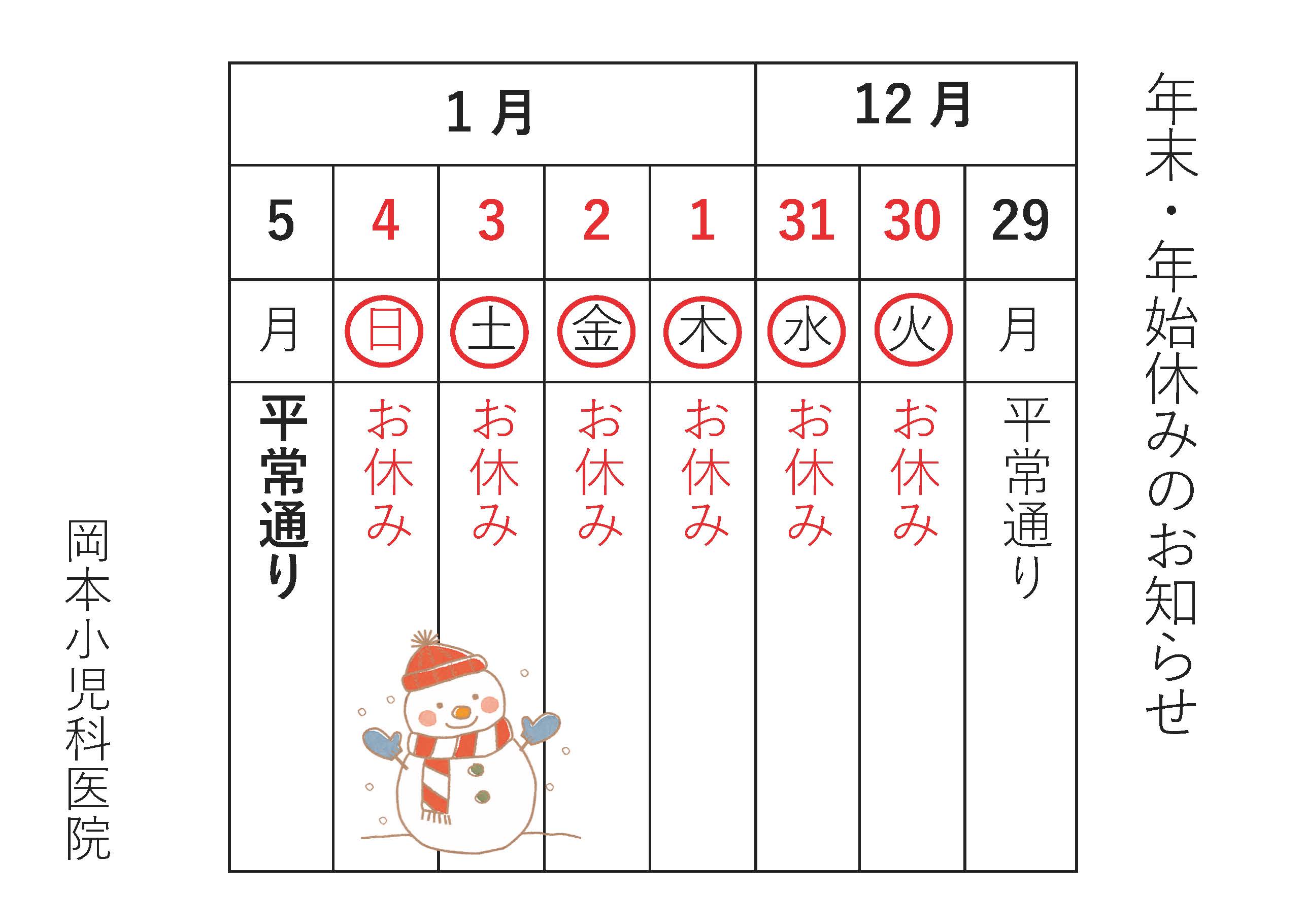 - 火曜日 3:00~4:00 乳児健診・予防接種は通常どおり